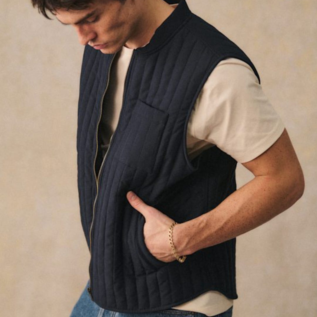 Another water-resistant option with a utilitarian edge, this quilted gilet nails springtime versatility.