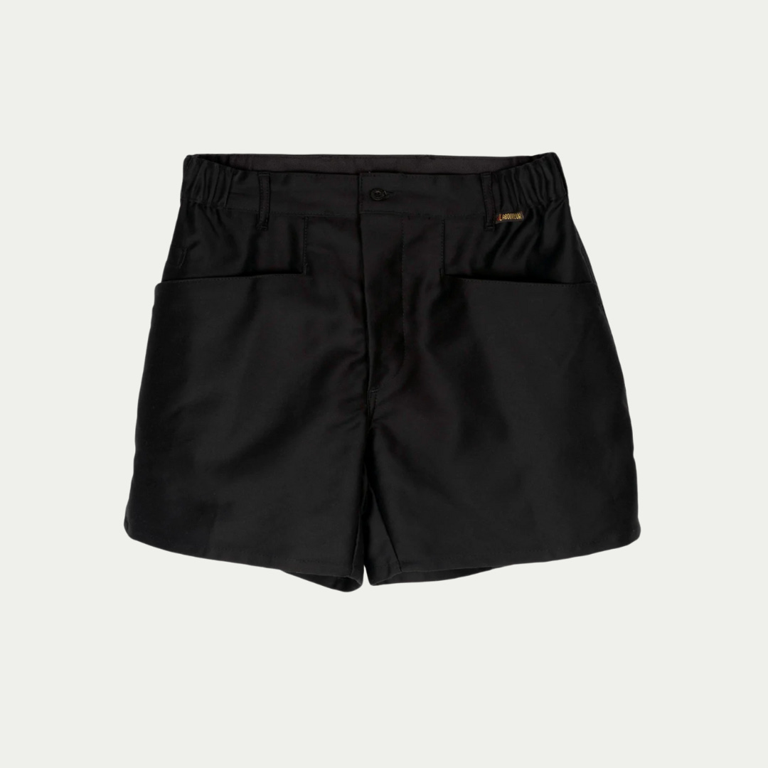 Built with dense French moleskin, these rugged shorts offer a structured silhouette that adds edge to soft spring textures.