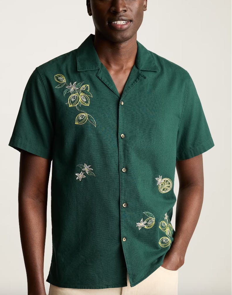 A breezy, embroidered short-sleeve shirt in a vibrant green with a cute lil lemon garden motif. An affordable option that’s perfect for sunny getaways.