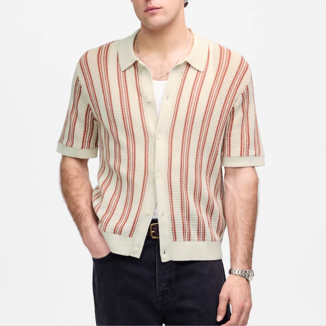 Good: Madewell Cotton Striped Open-Stitch Full-Placket Sweater Polo, $118